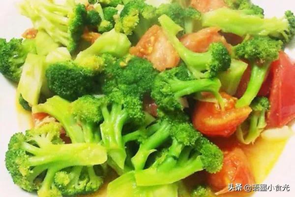 【番茄炒西兰花】:番茄去皮切成小块,西兰花分切成小块加盐泡水里15分钟左右再冲洗干净后焯一下水,过一遍凉水沥干水分,锅热倒入适量的油把番茄放入锅中炒出番茄汁,再把焯过水的西兰花放入锅中一起翻炒几下,然后加少许生抽,盐调味即可出锅装盘,虽然比较清淡,但味道还是很好吃的。
