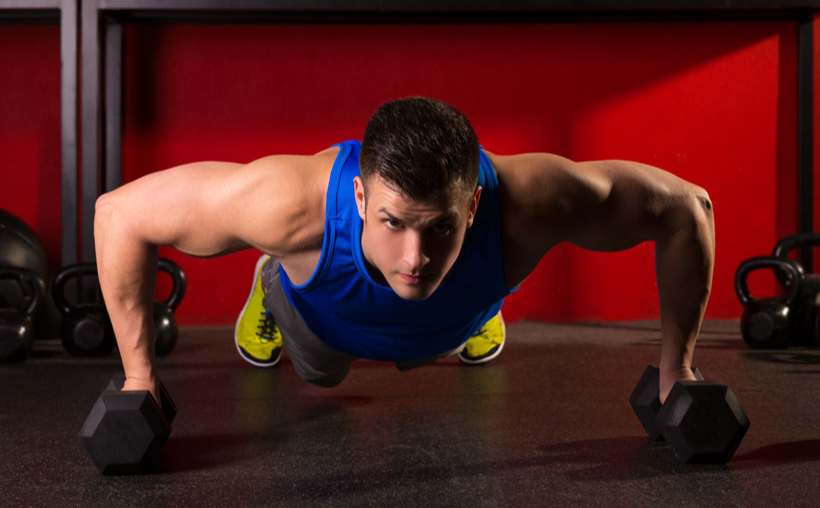 第二动作,针对是我们的肱三头肌哑铃的窄握俯卧撑。