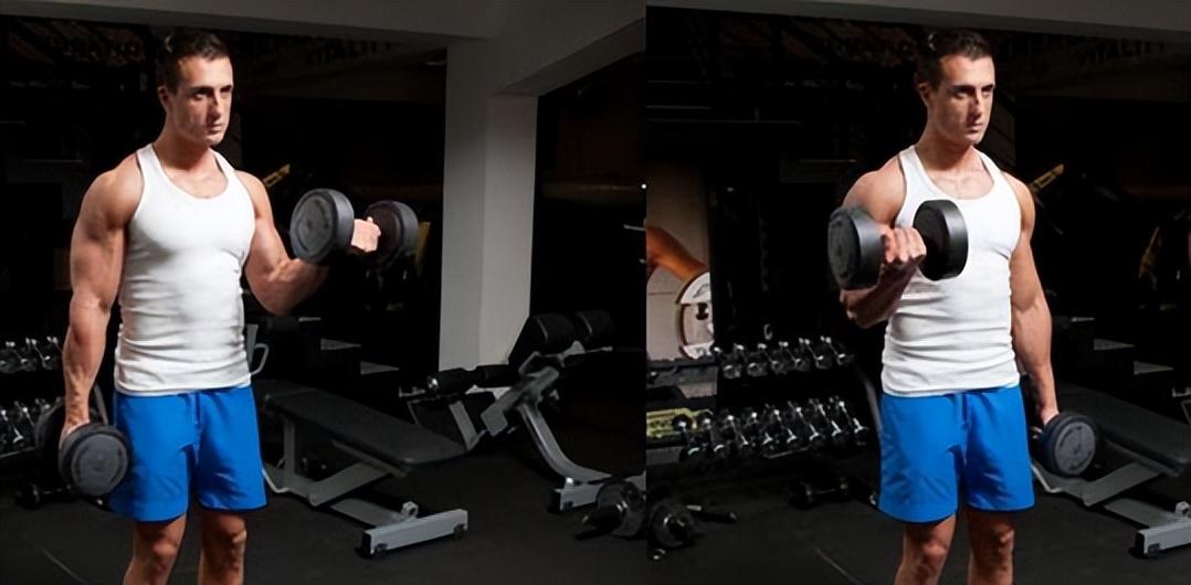 细节来了,你的双手要使出吃奶的劲,用力地攥紧哑铃,然后向上弯曲起来。