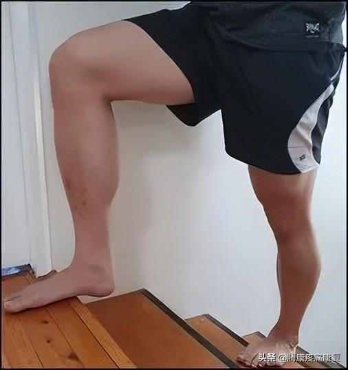 一只手抓住适当的重量。站在台阶的边缘,另一只手可以保持平衡。在整个练习过程中要保持膝盖完全伸直。慢慢地把脚后跟放低。目的是感受小腿后部的拉伸。重复10次。拓展知识:怎么拉伸腓肠肌