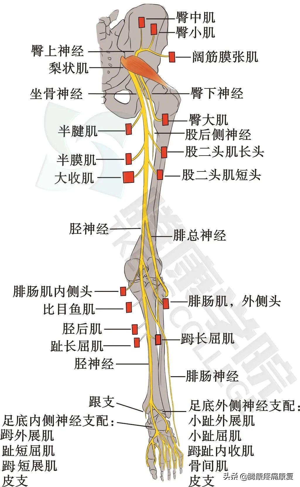 腓肠肌由胫神经支配。它来自于坐骨神经胫骨部分,主要由第一和第二骶神经供应。我们可以通过深肌腱反射来检查这条神经的功能。