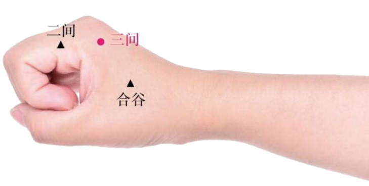 3、三间穴透新合谷(35度进针2.5-3cm)