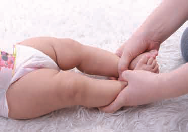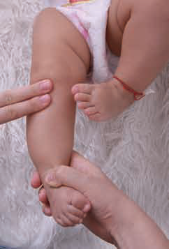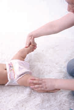 温馨提示:家长的手要与宝宝的腿部接触,但不要搓伤宝宝的皮肤。