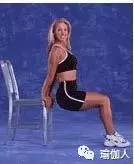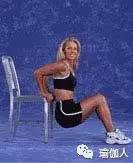 向后弯曲手肘,慢慢向地面放低臀部。保持手肘弯曲,身体应该刚刚跟椅子“擦肩而过”,不能移动双脚。重复8到15次,休息后换左腿伸直,重复动作。