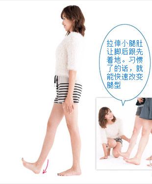 人每天都会走路,在平常走路时,有意识地用脚后跟先着地,这样就能有活动腿部内侧肌肉,快速改变腿型。