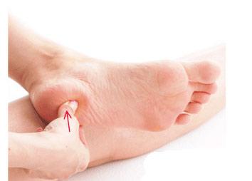 3.很多妇科穴位就位于脚后跟。一只手握住一只脚,然后用手指按压脚后跟,通过揉按脚后跟,就能有刺激这些妇科穴位。