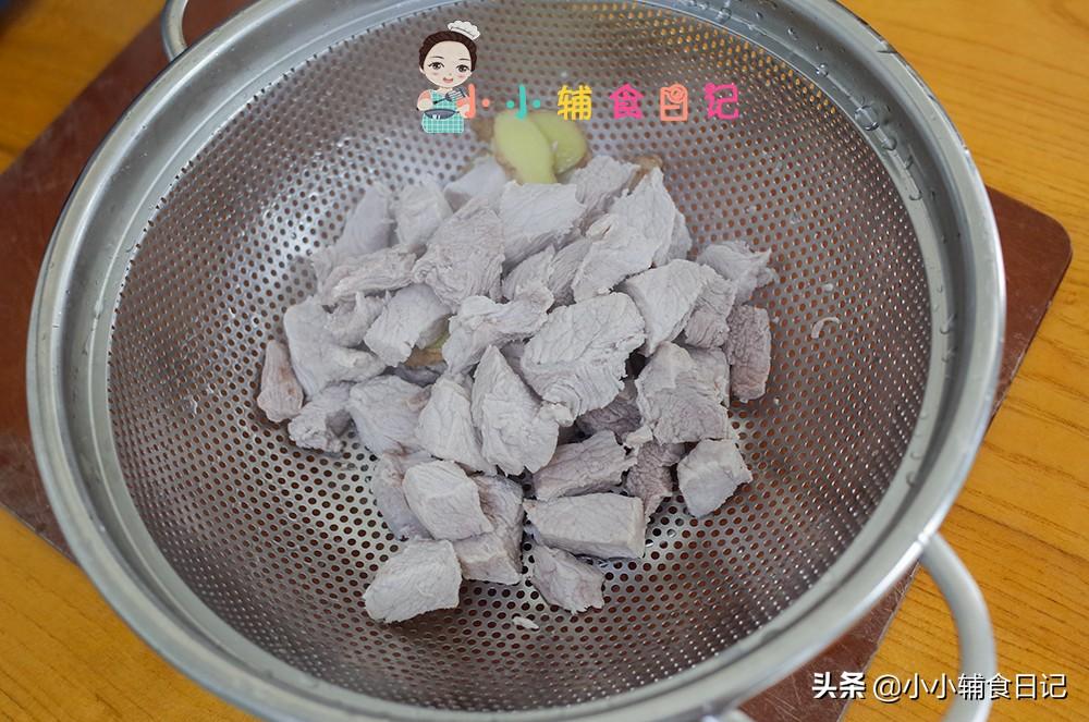猪肉顺着那个纹理切成块,去掉筋膜的部分备用。