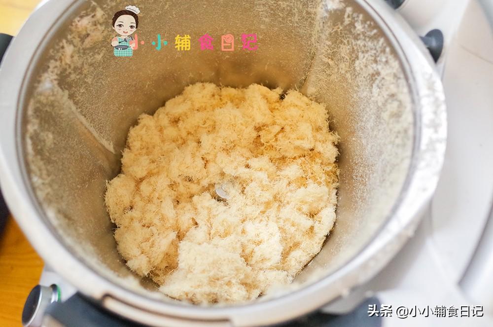 肉松做好以后放到料理机里打了半分钟,那个状态就已经的细腻了,你们用料理棒也可以,但是要分批,因为太多的话料理班是打不动。