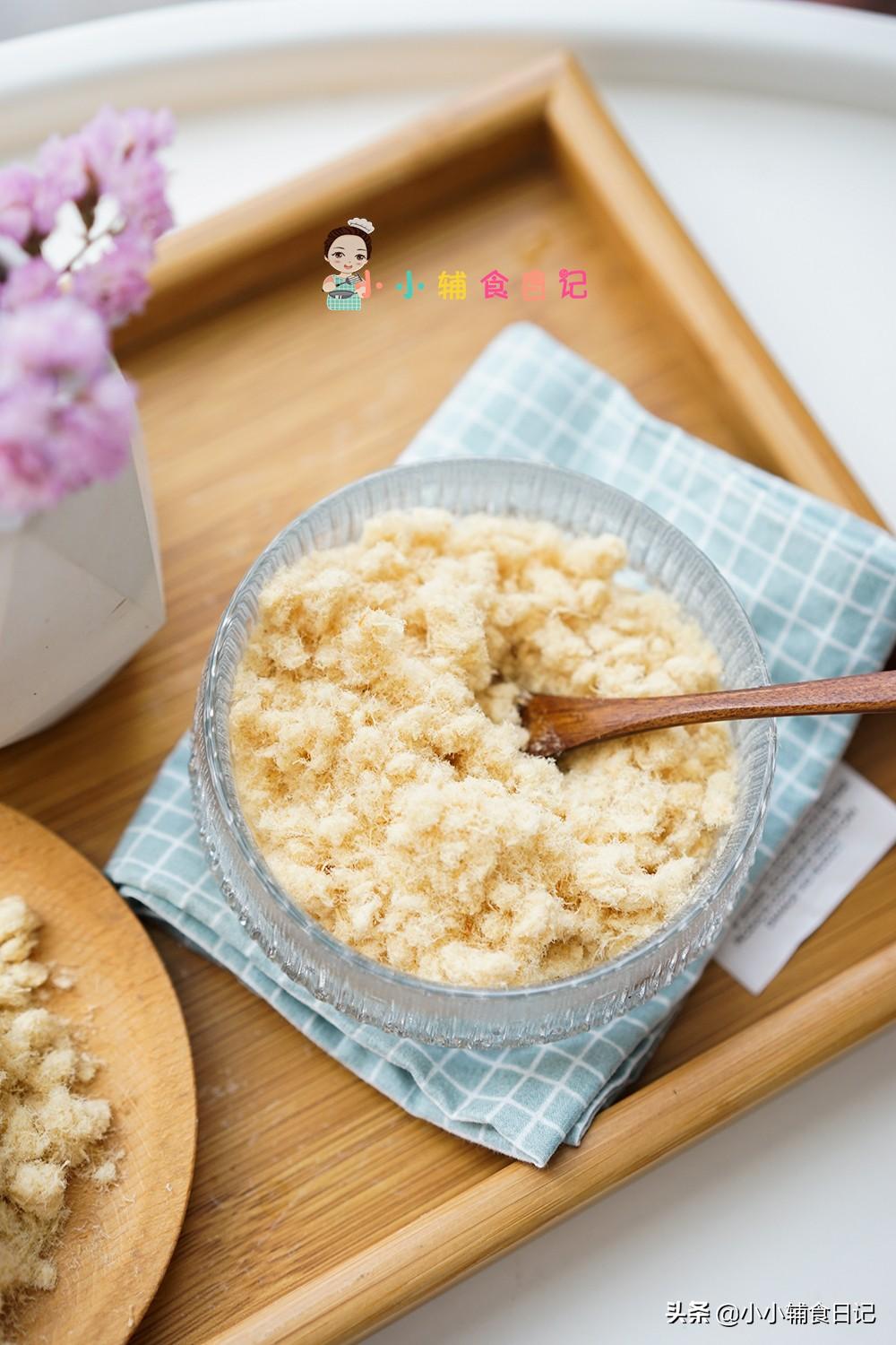 但是我们可以把肉松混到一些粥里面呀,饼里面呀,就不会咬着咬着变成渣了。