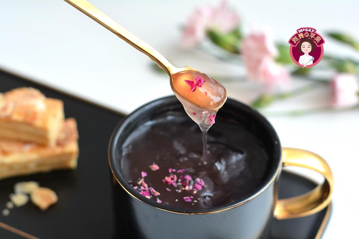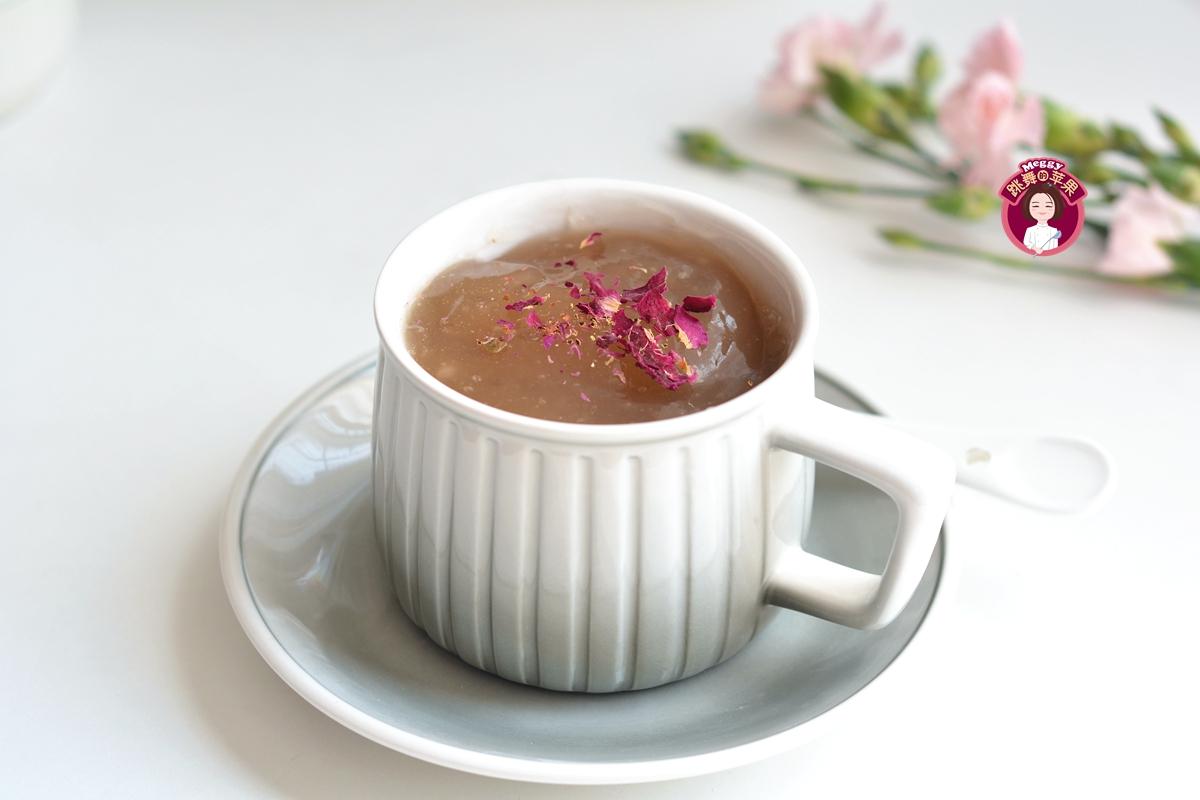4. 表面撒一点可食用干玫瑰花,春天喝不但可以清热祛火,还能舒肝散瘀,量虽然少,但细水长流便有大作用。