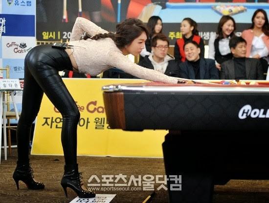 六、台球姿势 90%以上都是俯身式,长期保持这个姿势,女生的胸部会往前抬高,臀部向上挺翘,经常锻炼,成就迷人身材。