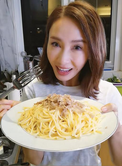 她微笑着晒出晚餐,这盘意大利面几乎没有任何配料,十分清淡,但当她把切成薄片的白松露撒在上面后,这一餐就至少要几万元。