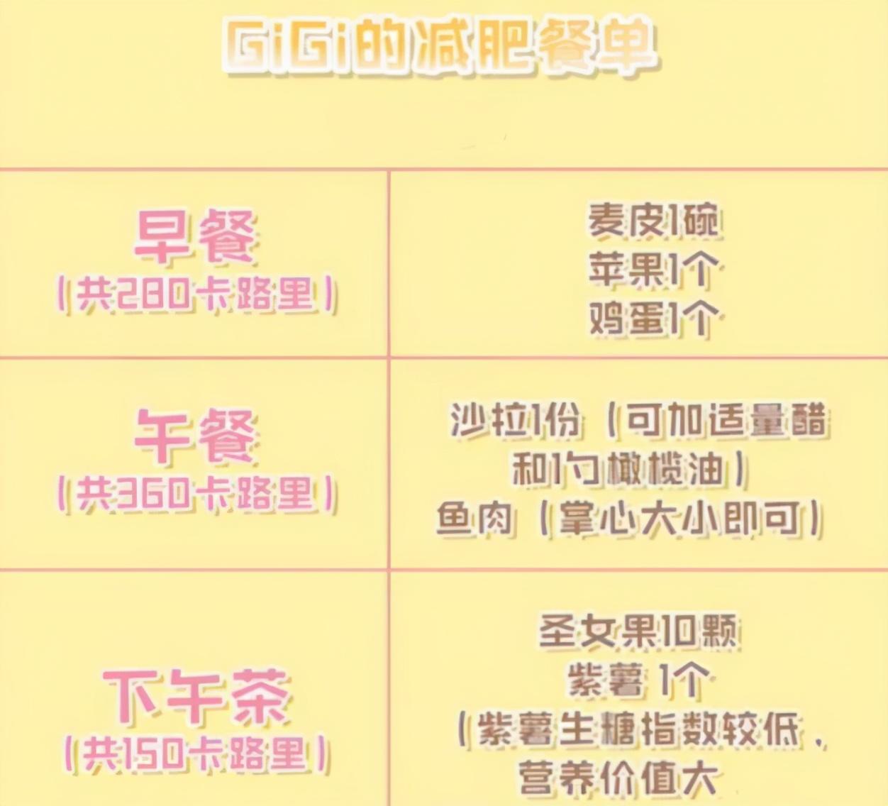 她曾晒过减肥食谱,每一餐都控制了卡路里,工作之余不忘健身,这种自律很让人敬佩。