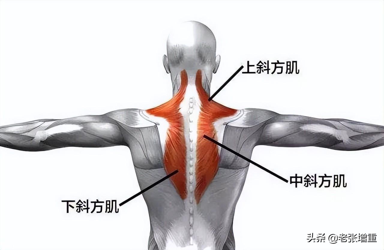 首先就说说这个上斜方肌,这可是瘦子格外要注意的地方,你千万不要把它练大了,上斜方肌的位置就是咱们的脖子下方,锁骨上方的那块肉,这块肌肉不适合瘦子练。