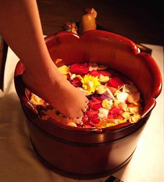 方法:将温水注满木桶,以能完全没过小腿为准,然后加入精油和浴盐,再把整个小腿放入水中浸泡15分钟左右,同时轻揉按摩小腿,帮助排毒,紧实双腿线条。