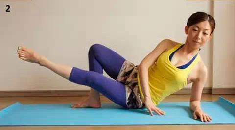 Step 1. 如图1所示的姿势做好。其中一只手肘支撑着上身,上臂与前臂呈90度角。贴紧地板的腿要伸直,而另一条腿则弯曲着立在地板上。