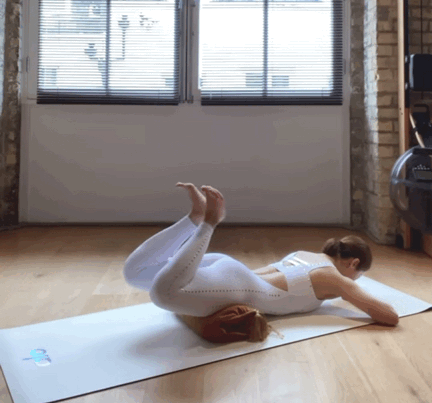 - 俯卧在垫子上,耻骨下方垫抱枕;