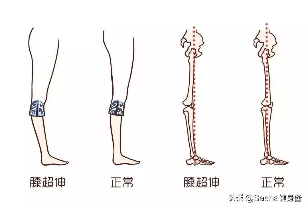 正常情况下,我们的大腿和小腿呈一条直线,膝过伸又叫膝超伸,即大腿和小腿不在一条直线,膝关节过度伸展,膝盖下陷。如图所示,腿部呈现的反向弯曲,这个弯曲就是过伸。