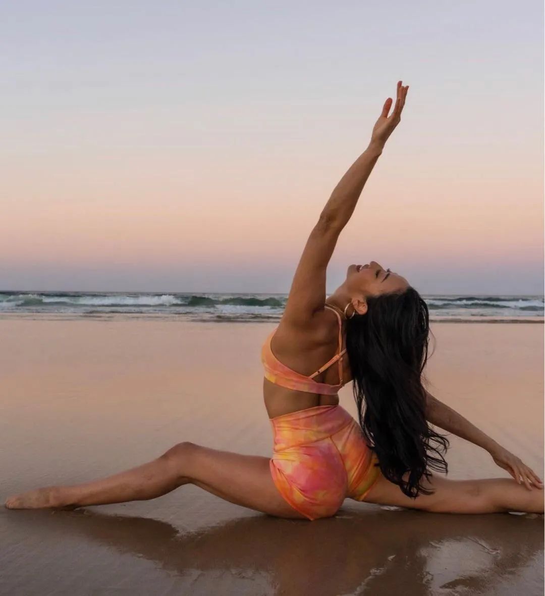 仰卧位,进入半婴儿式以右侧为先,左手压住左侧髂骨核心收紧,保持骨盆稳定保持10-12个呼吸,换另外一边体式09、仰卧手抓脚趾
