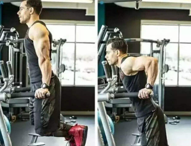 这个过程中,对手臂和胸肌要求高,尤其是双杠的间距比较窄的时候,对我们的手臂要求高,这个动作就成了锻炼手臂围度的好选择了。