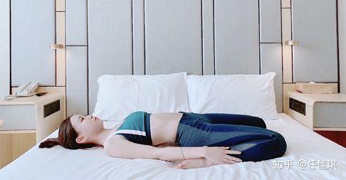 前段时间抖音疯传的瘦腿神法,屈膝跪坐在瑜伽垫或者床上,屁股坐在双腿之间,慢慢向后躺在瑜伽垫上,感受大腿前侧的拉伸感。