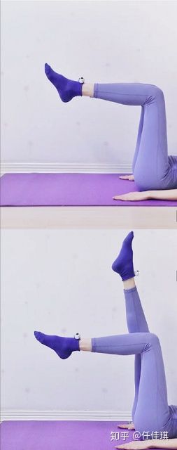 屁股抬高,腿靠墙拉伸,2个脚交替运动,左脚往下右脚往上,右脚往下左脚往上,交替各做50下。