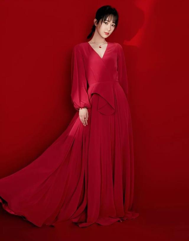 杨紫穿的这件红色泡泡袖长裙不仅鲜艳夺目,而且还有修饰身材的作用。泡泡长袖的设计可以修饰手臂粗壮的缺点,同时袖子又宽松得恰到好处,没有过于膨胀,设计也比较简洁。小V领的设计展现了杨紫修长的脖颈,又可以同时修饰肩膀过宽过壮的缺点,称得上是一举两得。与此同时,这条小V领红色泡泡袖长裙的收腰和高腰的设计,可以从视觉上拉长下半身的身材比例,从而使整个人看起来显高又显瘦。
