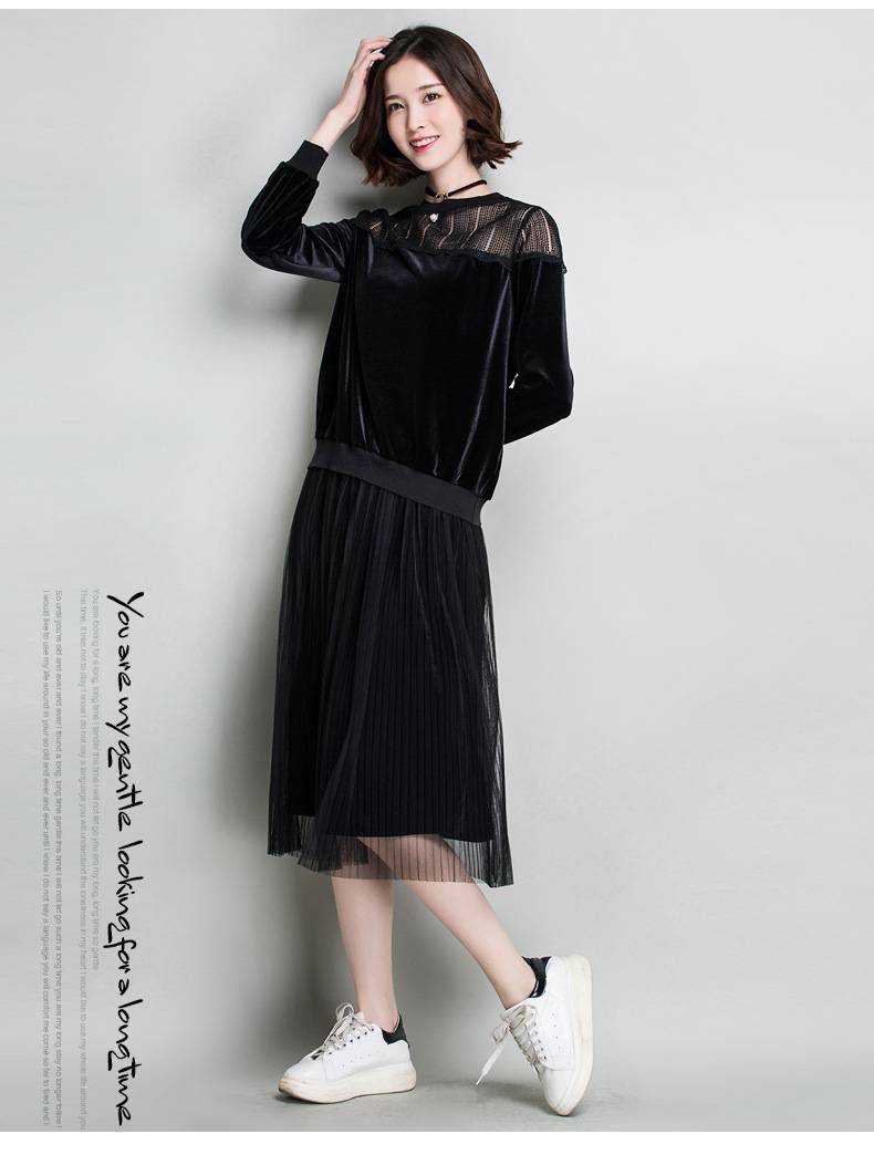 推荐穿搭look:黑色镂空款中长纱裙