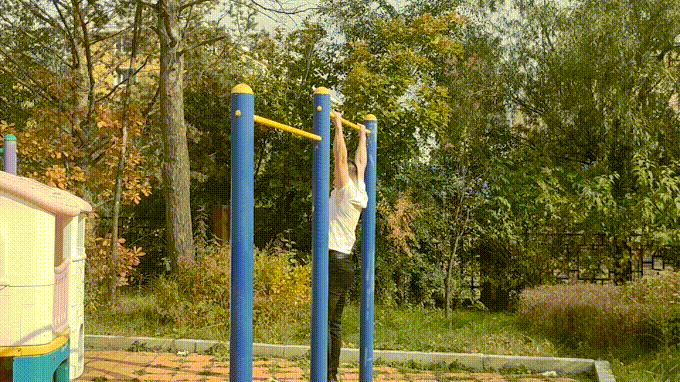 动作要领:让握距比肩略宽,然后收缩腹部以及臀部肌肉,把全身绷紧并拉起身体,如果你力量很小,做不了引体向上的话建议用健身房的高位下拉器械代替。