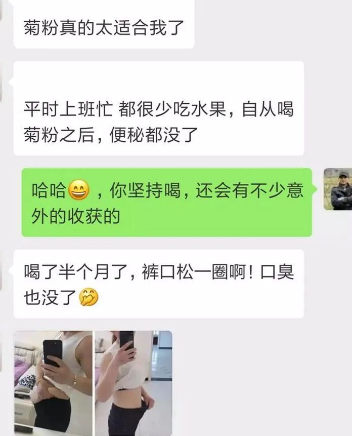 平时上班忙,很少吃水果,喝了半个月菊粉,便秘,口臭没了,裤子松了一大圈呢~