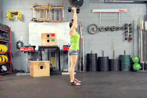 动作4、深蹲推肩(进行15次,重复3-4组)