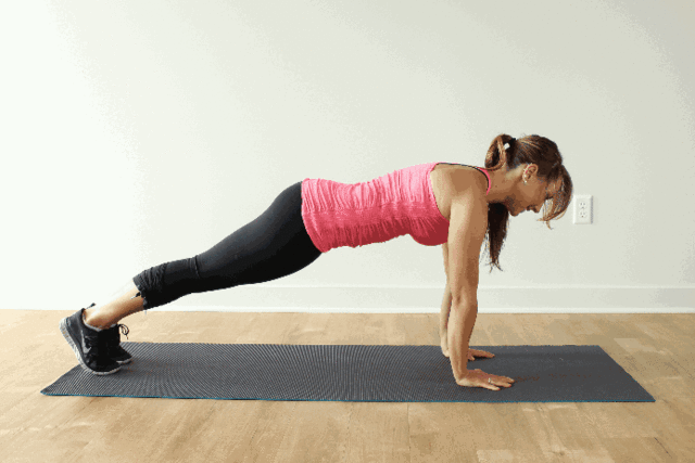 动作6、俯卧撑提膝 (左右各进行15次,重复3-4组)