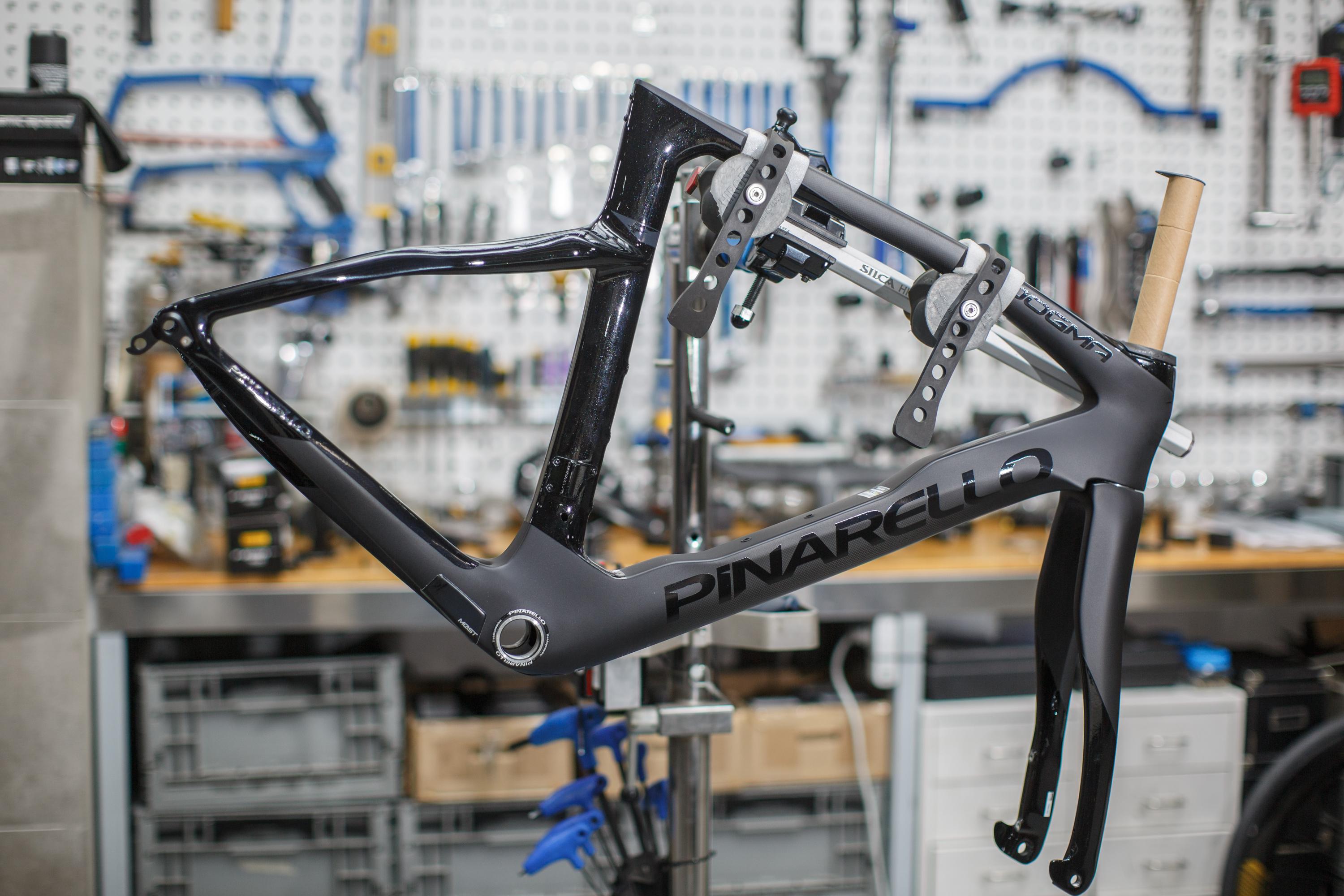 据机械师介绍,组装一辆高端公路车需要花费近3个小时。 新京报记者 王子诚 摄