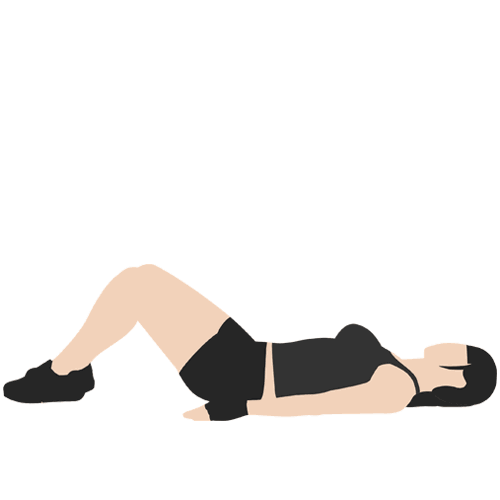 背部着地躺在地面上,双膝呈弯曲状,双脚平放在地面,手臂放在身体的两侧,掌心向下,躯干用力,慢慢抬高臀部离开地面,直至肩膀到膝盖之间的身体形成一条直线。保持这一姿势1到2秒钟,然后慢慢回到地面。重复这一动作,尽可能多做。注意,双眼不要看腰,头部应该始终平放在地面,眼睛凝视天花板。