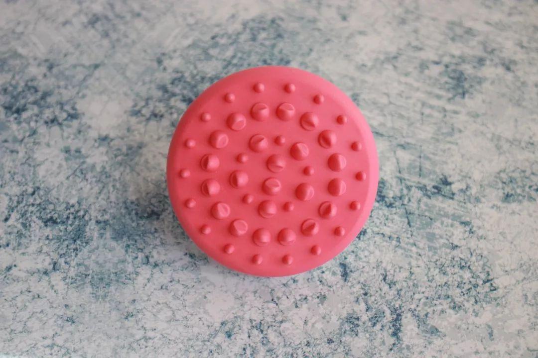 这把硅胶刷头有46颗按摩粒,高低错落,不仅能刷大腿平面,更可以直接刷小腿肚等比较圆润的地方。