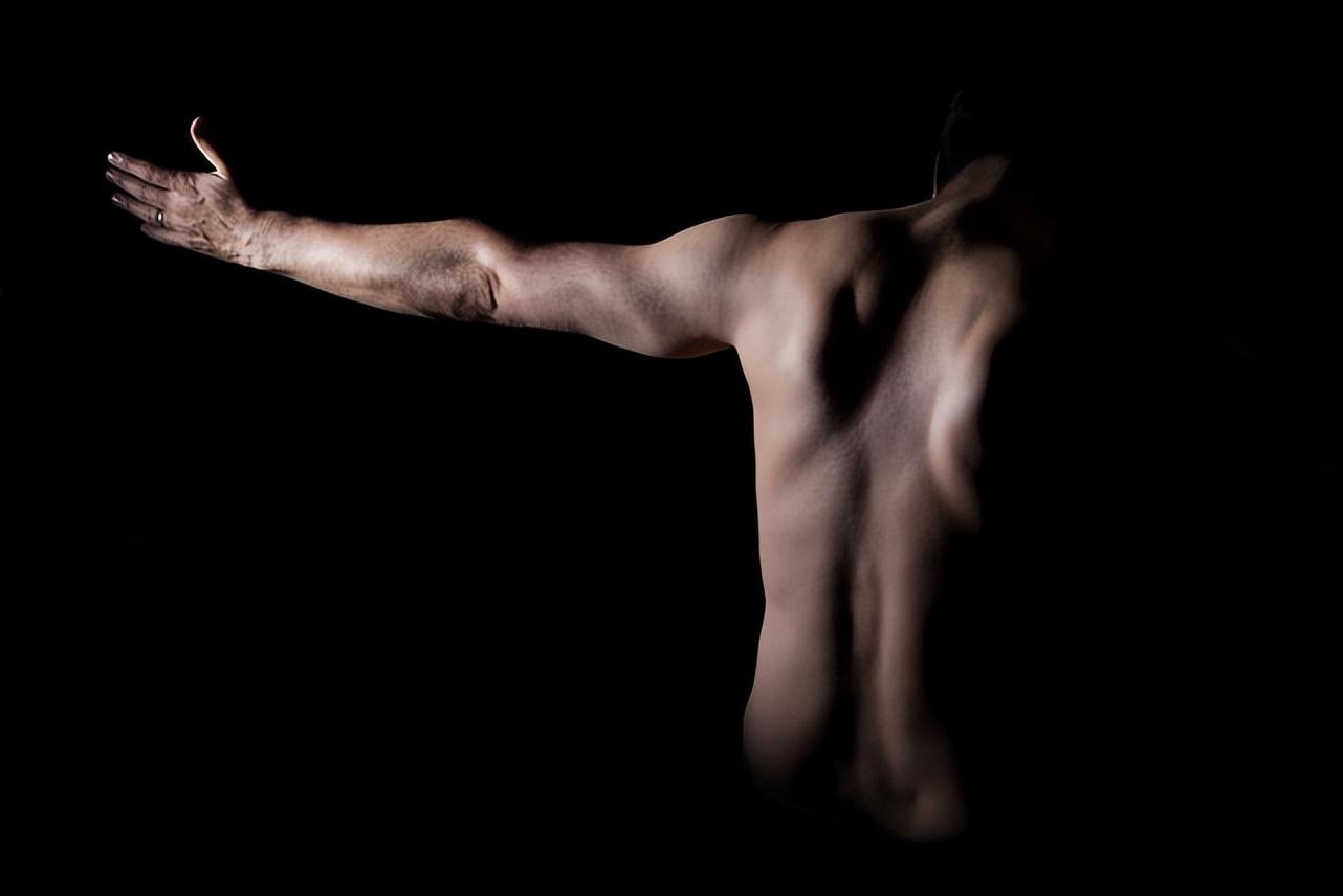 ◙尽可能宽地伸展你的手臂,然后将它们向下环绕到身体两侧,手掌朝下。一旦你不能再保持手掌向下,将双手翻转至手掌向上,并将双手放在下背部的中央。
