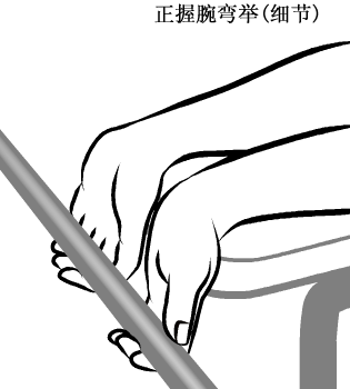 正握:主要锻炼前臂内侧肌肉,即屈腕、屈指肌群的肌肉。