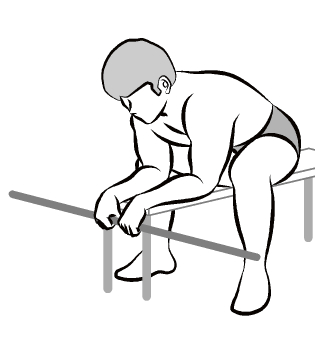 起始姿势:双手正握(手心向下)杠铃或哑铃,握位与肩同宽,小臂放在长凳上。