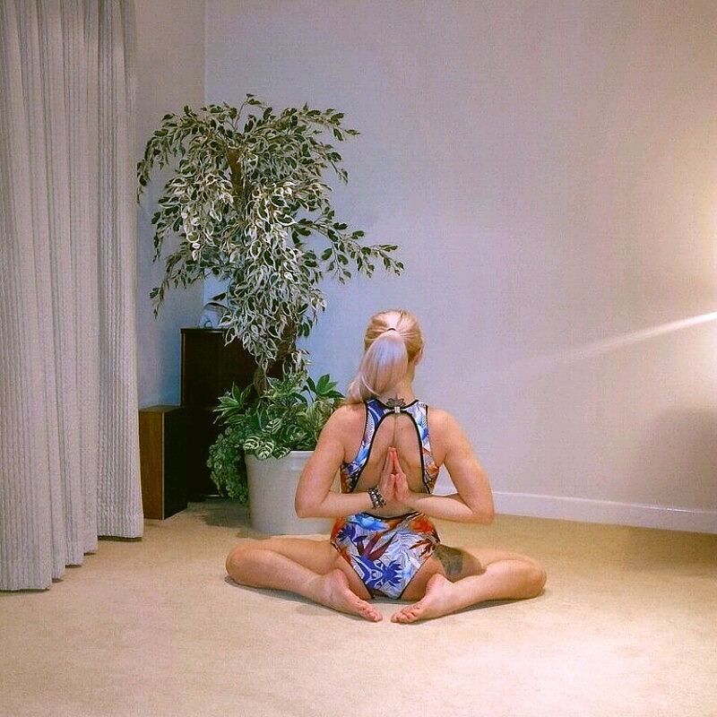 而对于X型腿来说,需要锻炼的就是小腿,而反手祈祷趴坐式,就是一个专门锻炼小腿的体式,体式在反手祈祷式的基础上,反向变体腿部的知识,从而达到针对小腿的锻炼,帮助X型腿小伙伴拉伸掰直小腿,改良X型腿的状态。