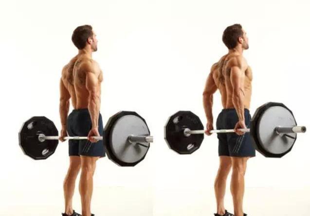 组可以给你的斜方肌提供全新的刺激。其中,耸肩和窄距杠铃直立划船就是一对理想的组合。