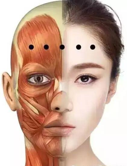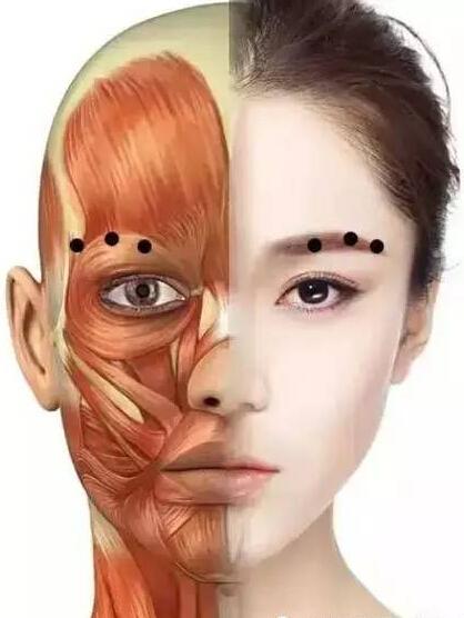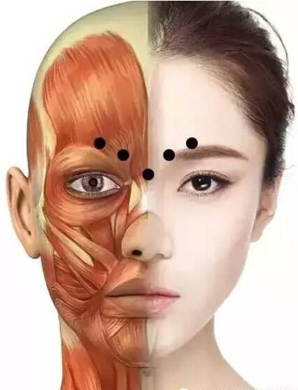 将注射总量分为3-5个注射点,覆盖眉间区参与皱眉纹形成的全部三组肌肉,先注射降眉间肌1点,然后每处皱眉肌各1点,另靠外侧部分及部分额肌注射2点。