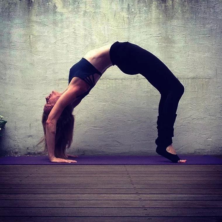 轮式应该是大家经常看到的体式吧,无论是初学者还是练习很久的人,都对这个体式很感兴趣,它是身体脂肪的克星。两条腿分开一个肩膀宽,膝盖弯曲身子向后倾斜,两个手臂伸出来超过头顶,支撑在地面上,手臂不要弯曲。