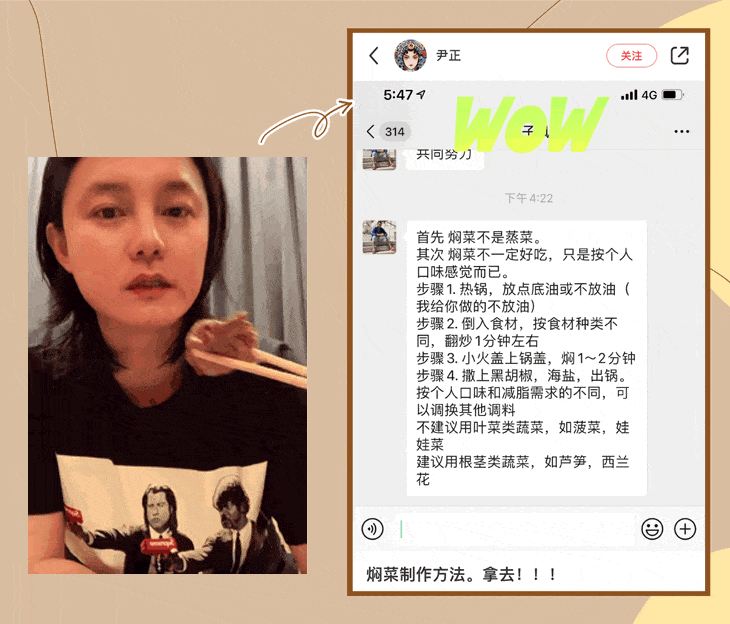 如果嫌口味太寡淡的话,关晓彤的蔬菜三明治、尹正的焖菜会更可口美味,饱腹感也强。