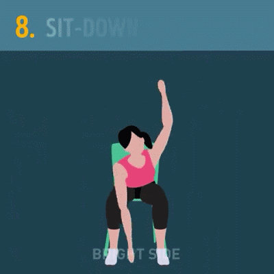 下面有一组椅子上的小动作,让你即使是做着也会把全身都运动到。所以,放下手机动一动吧!