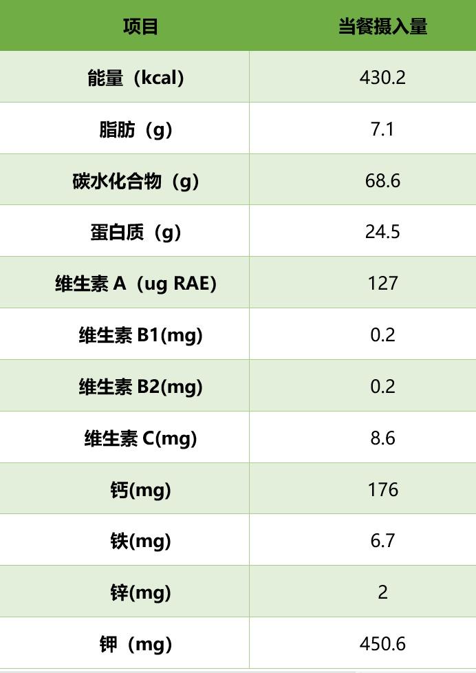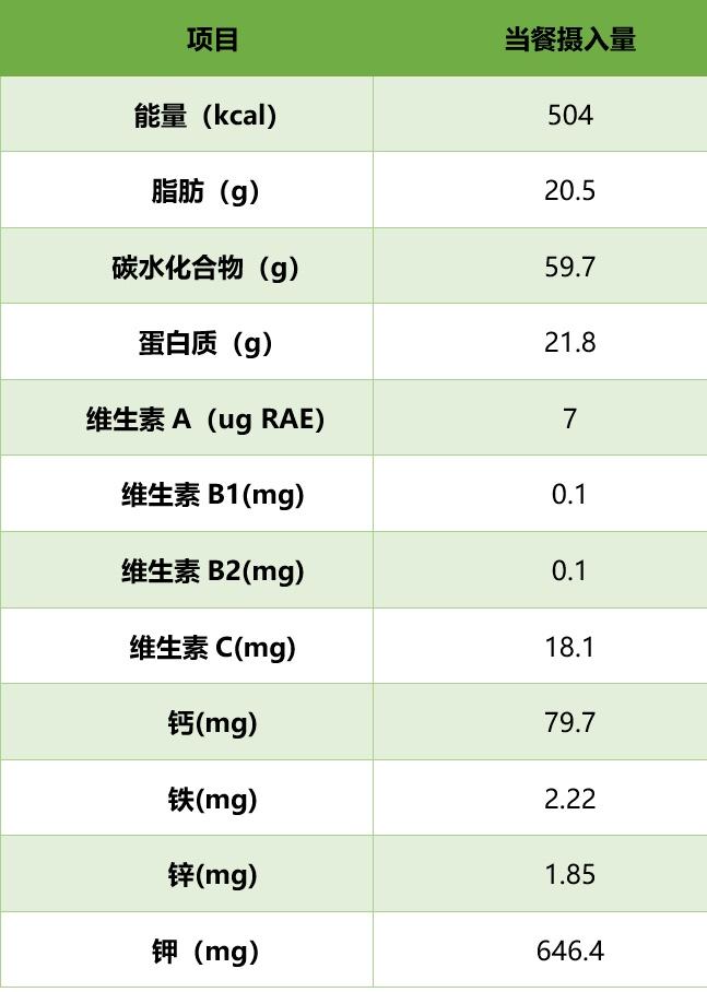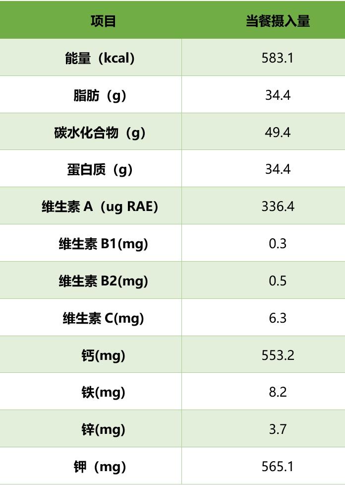 当餐部分营养素供应量