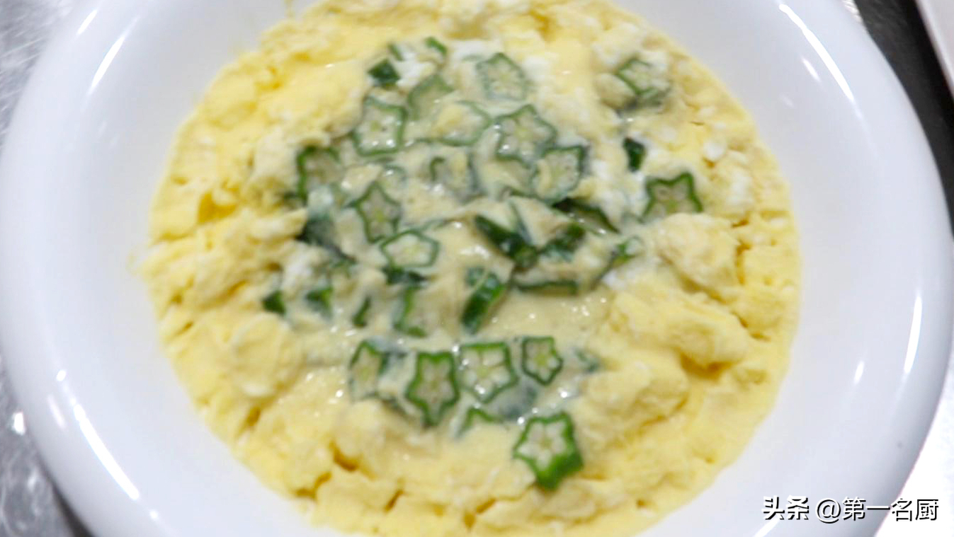 添入半勺清水,勾入少许水淀粉,把汤汁收浓,即可关火起锅装入盘中,这道营养美味的秋葵蒸水蛋就做好了。