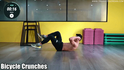动作六:仰卧单车 重复15次,进行3组