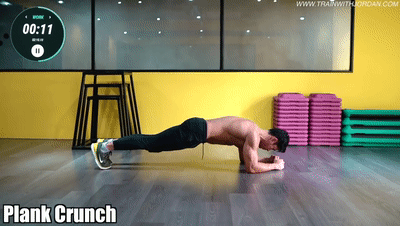 动作四:支撑收腹跳+对角摸膝 重复15次,进行3组