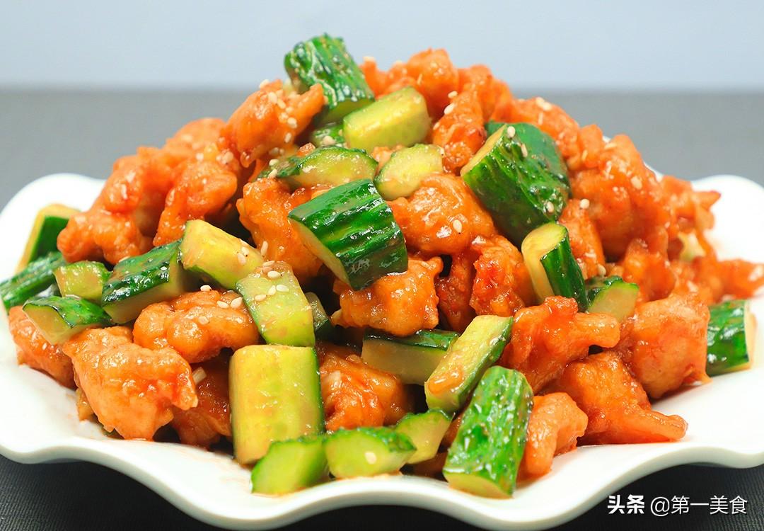 锅内再烧油,倒入调好的料汁炒出香味,倒入黄瓜丁,开大火翻炒至黄瓜断生,火太小的话黄瓜容易出水,影响口感,勾入少许水淀粉,把料汁收浓,倒入炸好的鸡丁,快速翻炒均匀,让鸡丁均匀裹满料汁,淋入少许明油提亮,翻匀后即可出锅,再撒上少许白芝麻,一道清脆爽口的青瓜鸡丁就做好了。