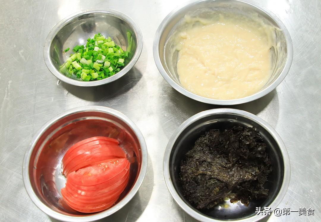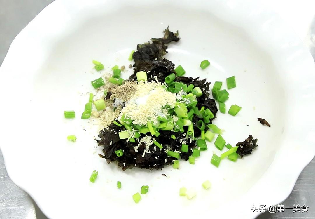 准备一个小盆,放入小葱花和紫菜,加入适量的食盐、鸡粉、胡椒粉。